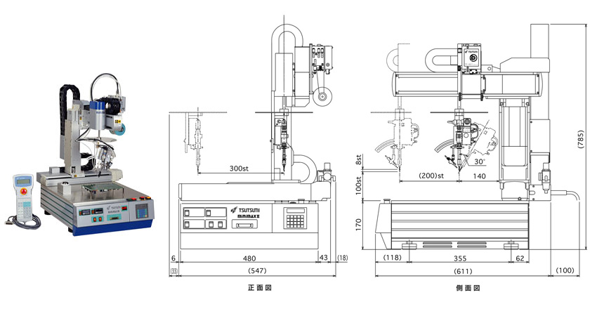 標準仕様で動作範囲300×200×100(X,Y,Z軸)を確保し高低差のあるワークにも対応可能です。また、MINIMAXⅡをベースにお客様の仕様に合わせて動作範囲をカスタマイズ可能となっております。