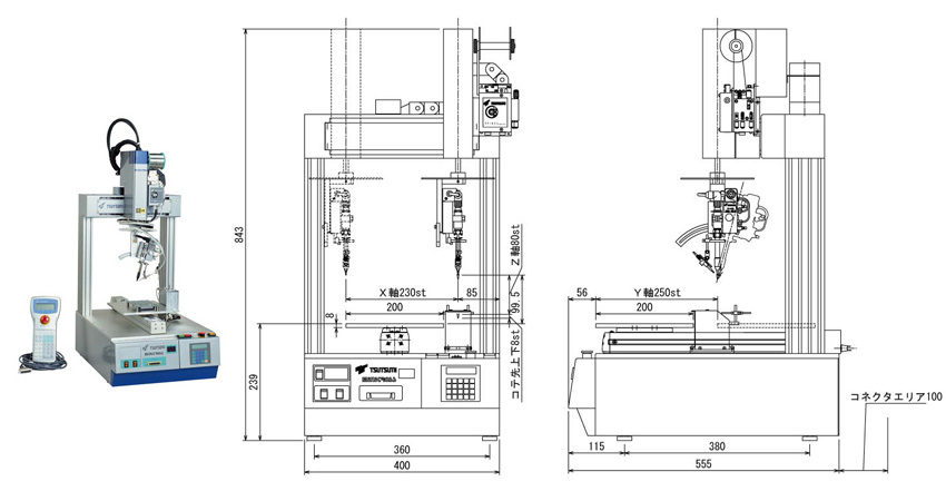 | 動作方法・制御軸数 | PTP制御・総軸数4軸(同時3軸直線、円弧補間機能有り) | ||||||||||||||||||||