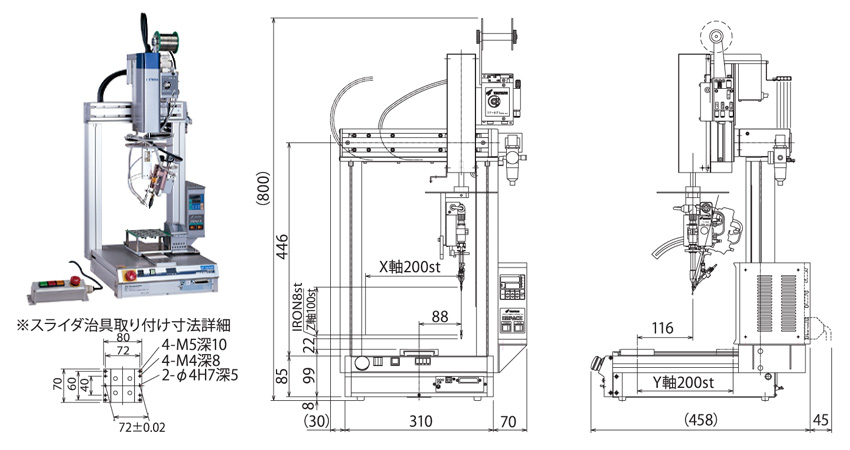 | はんだ付け条件 | 16ブロック(一次~三次はんだ送り量、 速度及び加熱時間設定可能) | ||||||||||||||||||||