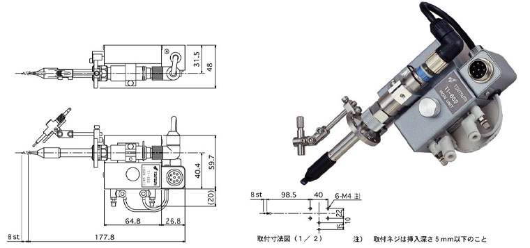 (注)「IRON UNIT」単体にはヒーター/TH-6-70-100及び、CAユニット(コテ先温度検出部)/TCA-16は付属しておりませんので、別途必要となります。